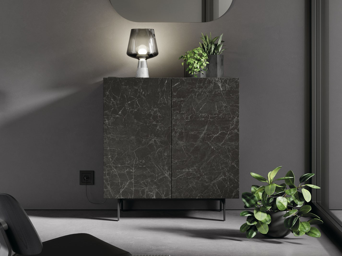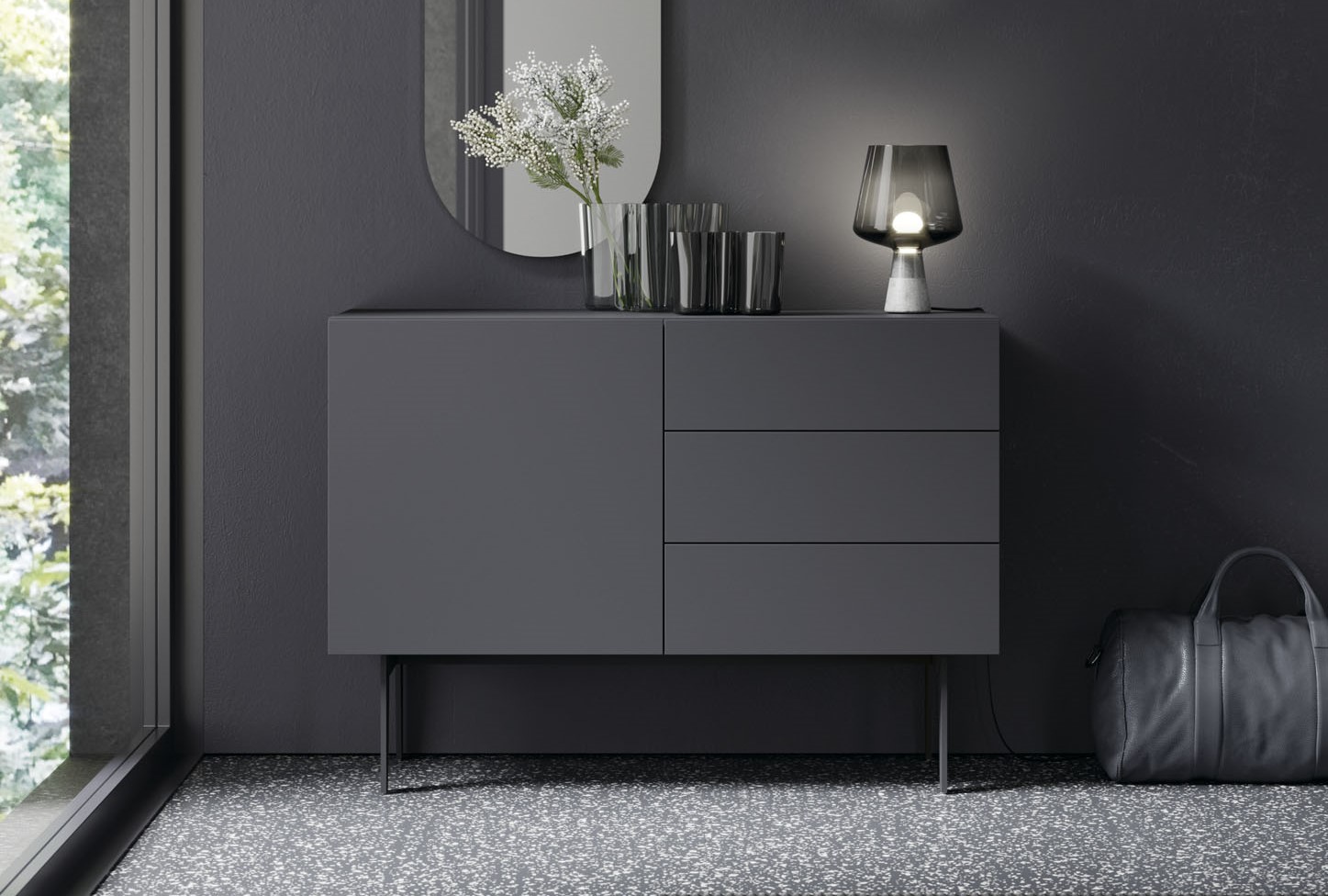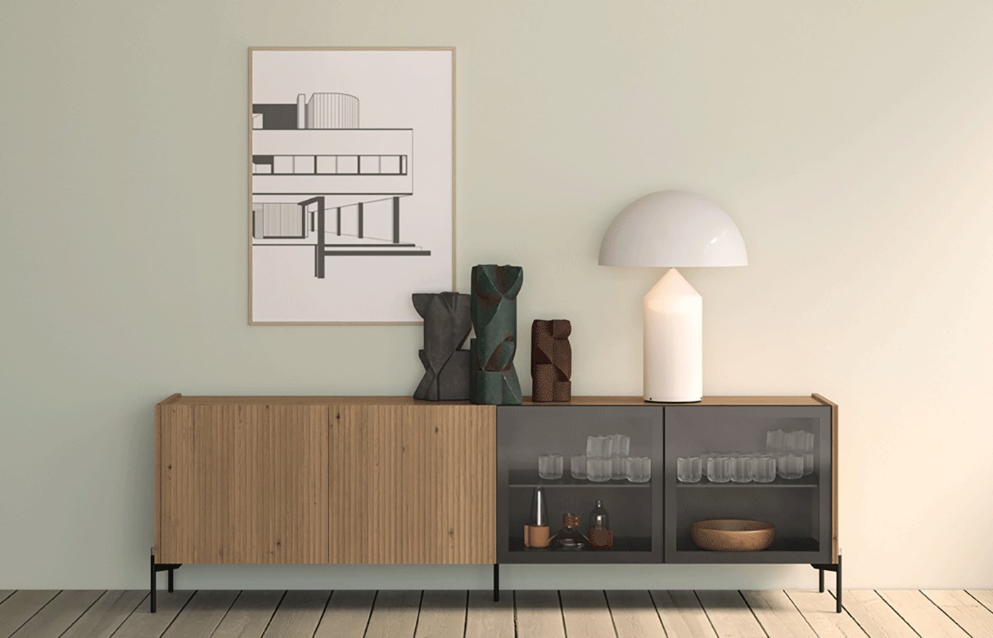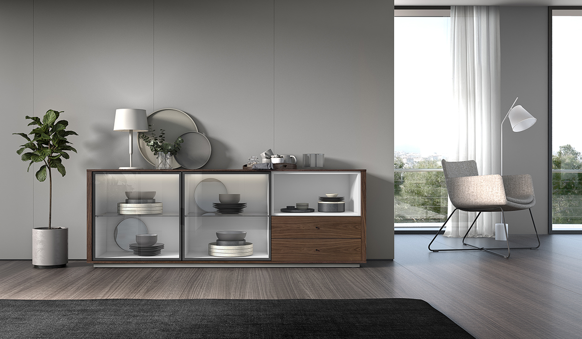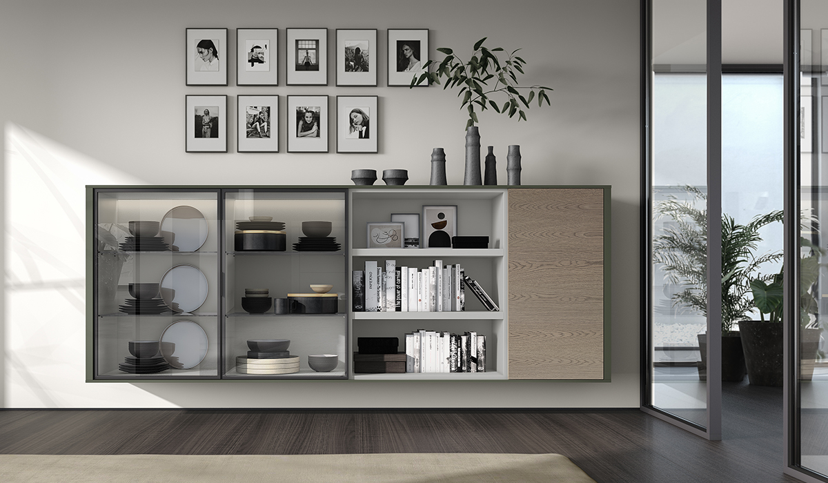 APARADOR DE DISEÑO MODULAR CON PUERTAS CRISTAL SUSPENDIDO A PARED 59 - 824