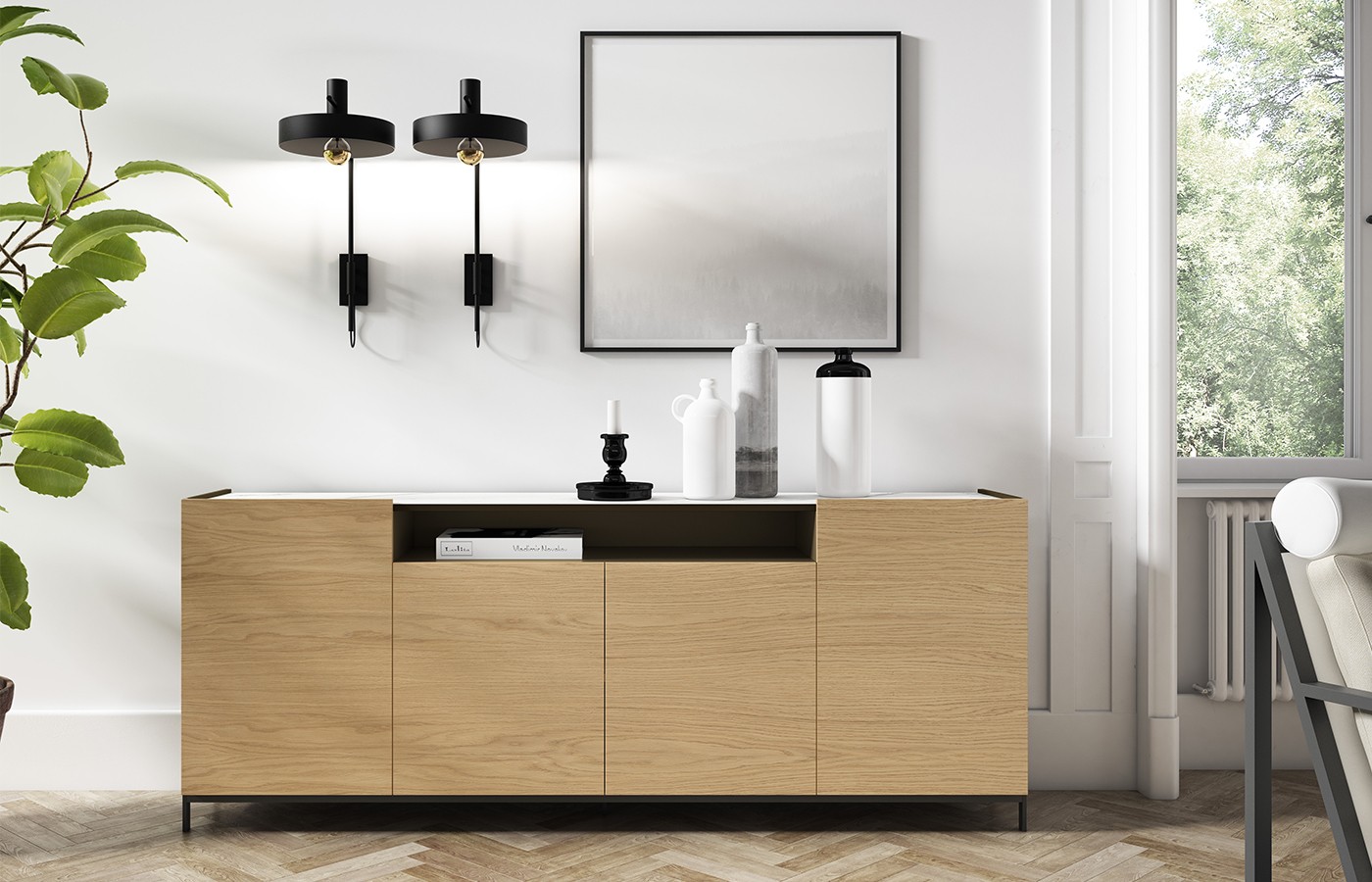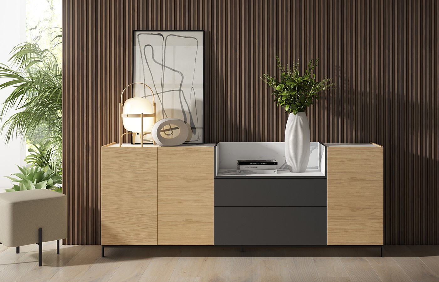 APARADOR DE DISEÑO 6 PUERTAS ROBLE NATURAL CON ZOCALO 77 - 960
