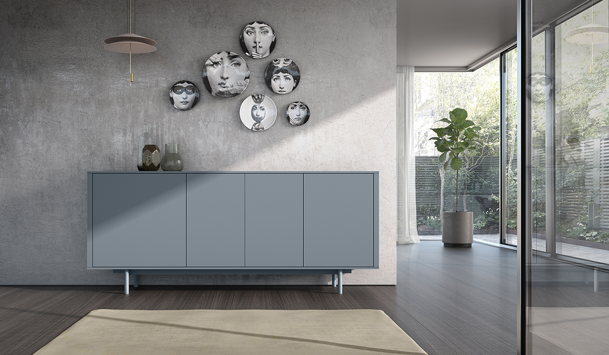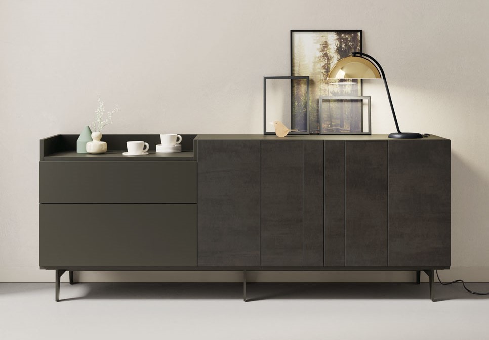 APARADOR DE DISEÑO FRENTE PUERTAS ACABADO DIAMANTE PATAS ALTAS 76 - 960
