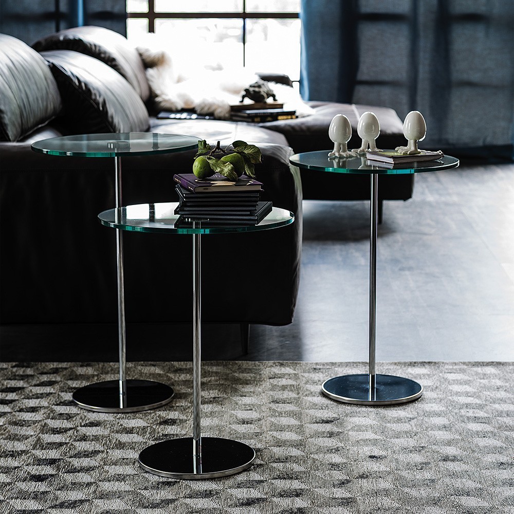 MESA AUXILAR MINIMALISTA TAPA CRISTAL BASE ACERO INOXIDABLE 45 - 580