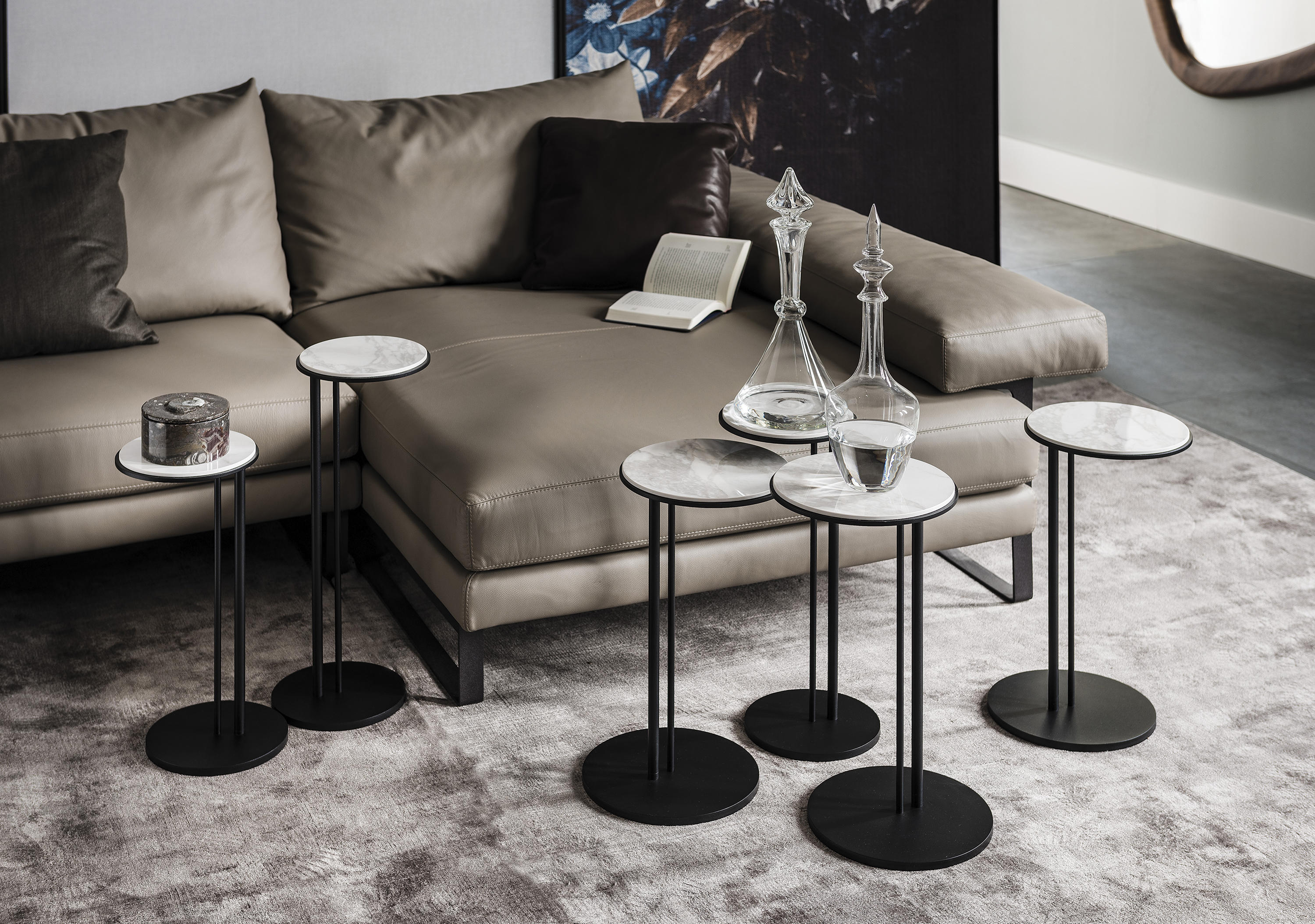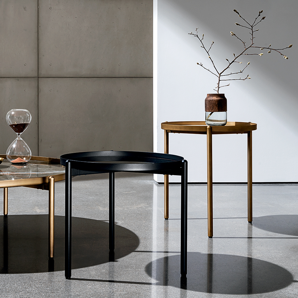MESA AUXILIAR REDONDA ESTRUCTURA METAL TAPA PORCELANICA 32 - 718