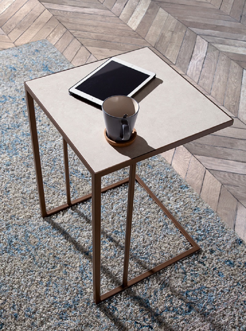 MESA AUXILAR MINIMALISTA TAPA PORCELANICA BASE METAL 45 - 580