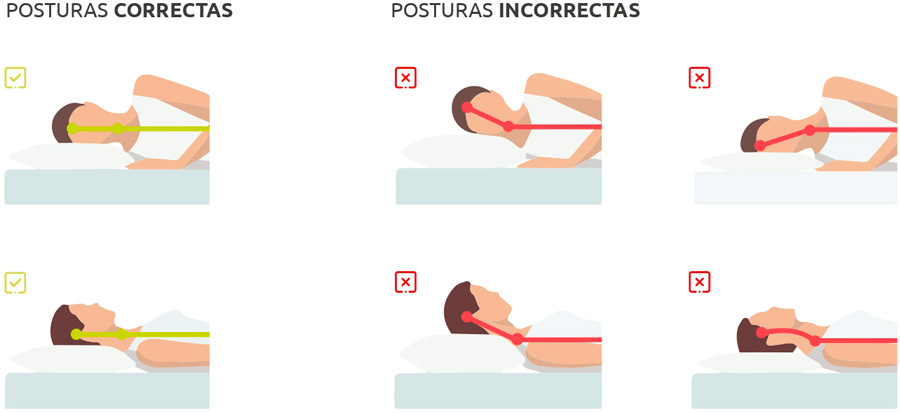 1.- Tu cabeza, cuello y espalda deben estar alineados, bien sea en postura de lado o boca arriba.