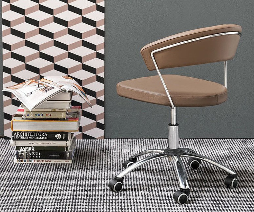 SILLA OFICINA TAPIZADA EN PIEL ESTRUCTURA ACERO CROMADO 21- 251