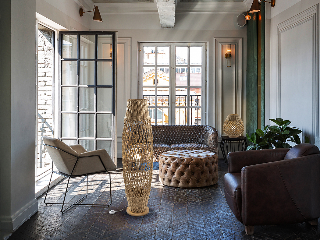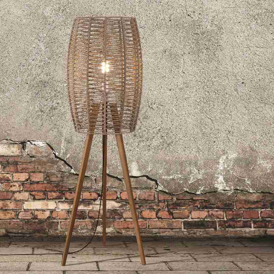 LAMPARA DE PIE DE DISEÑO ESTRUCTURA MADERA PANTALLA DE CUERDA 59 - 916